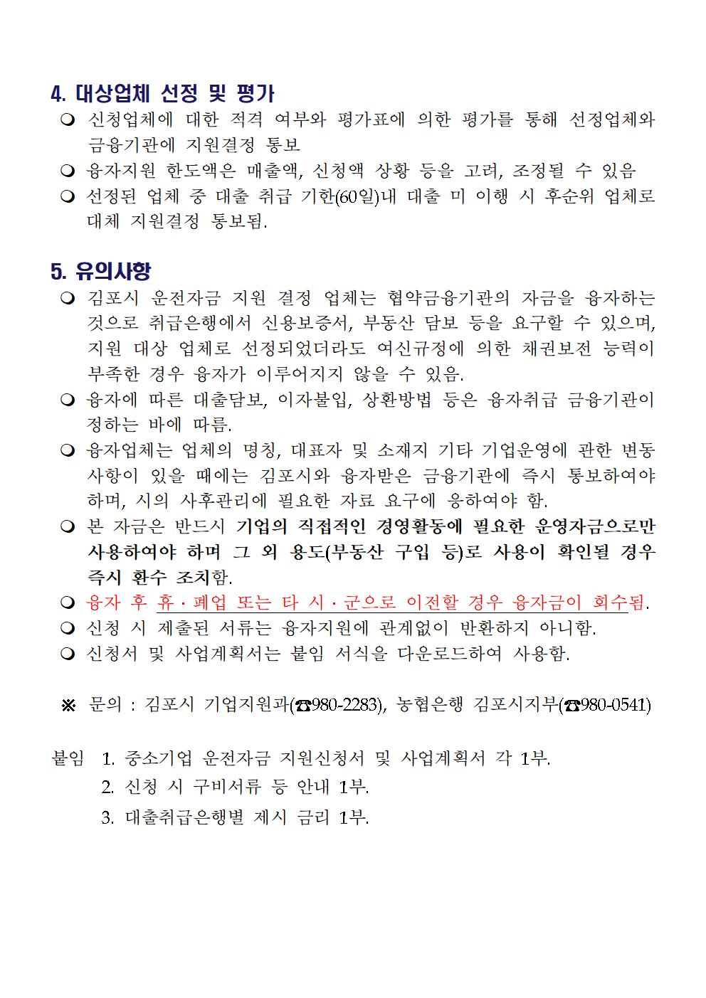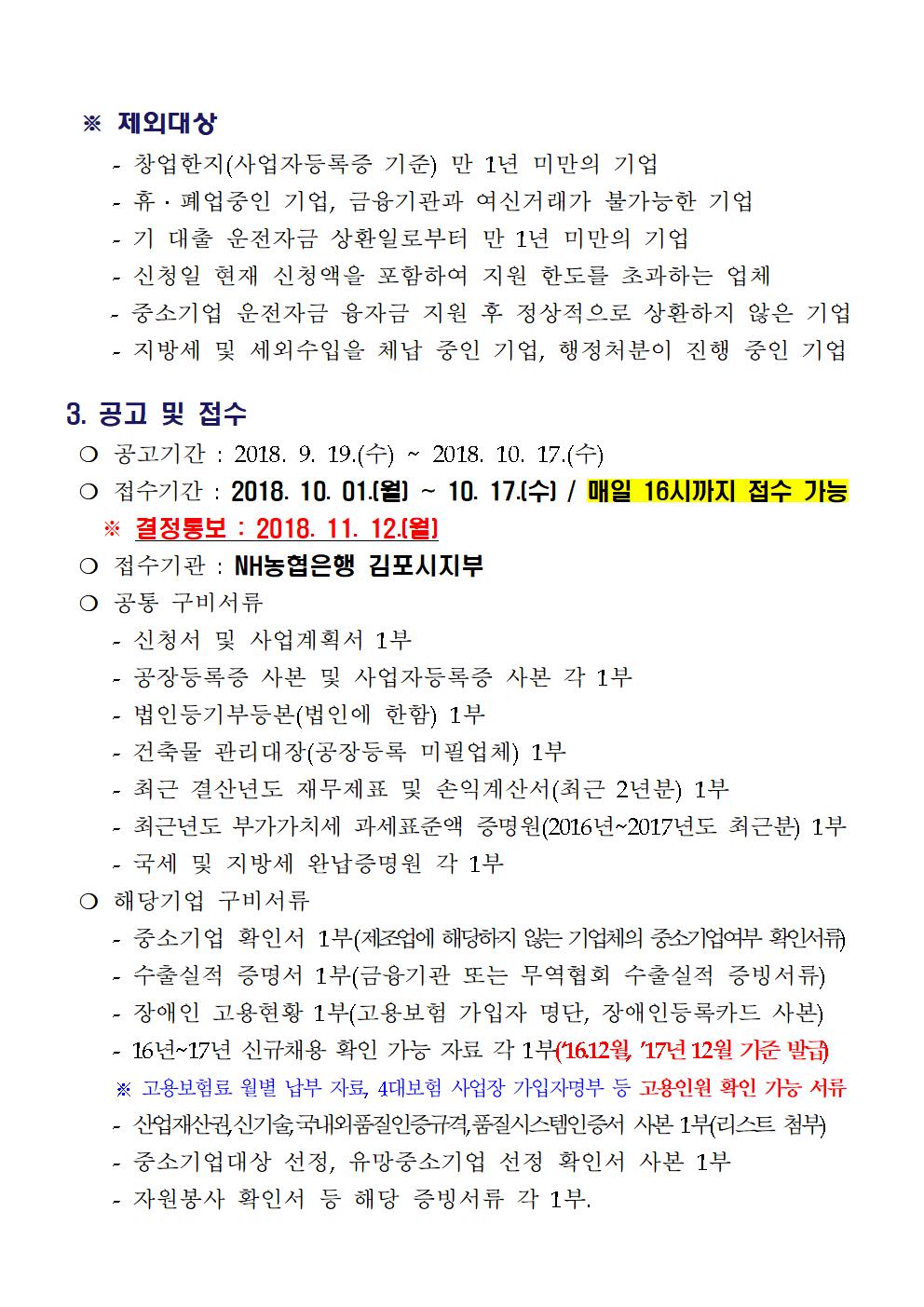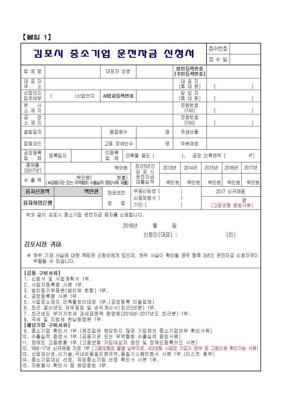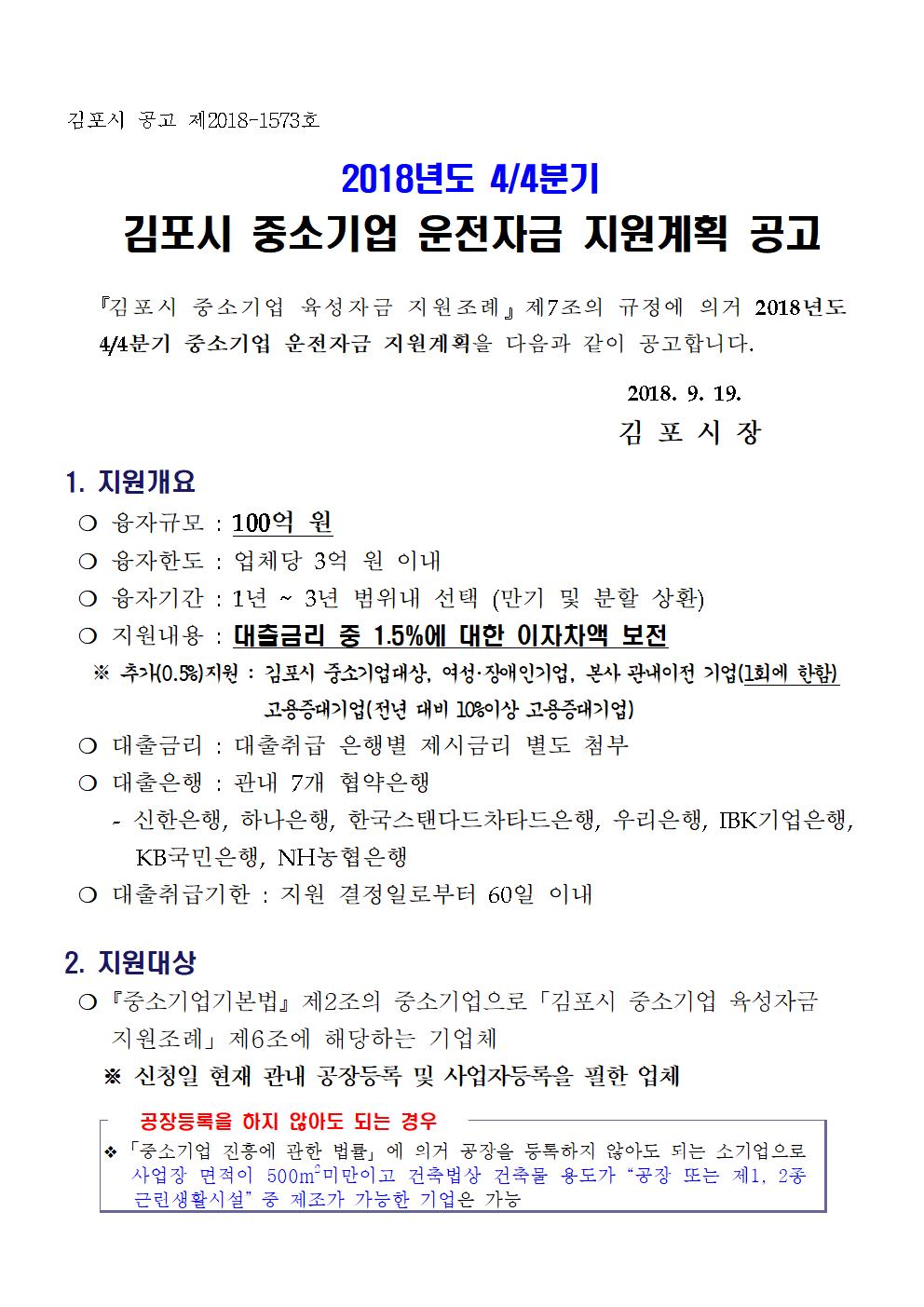 2018년 4/4분기 김포시 중소기업 운전자금 지원계획을 붙임과 같이 알려드리오니