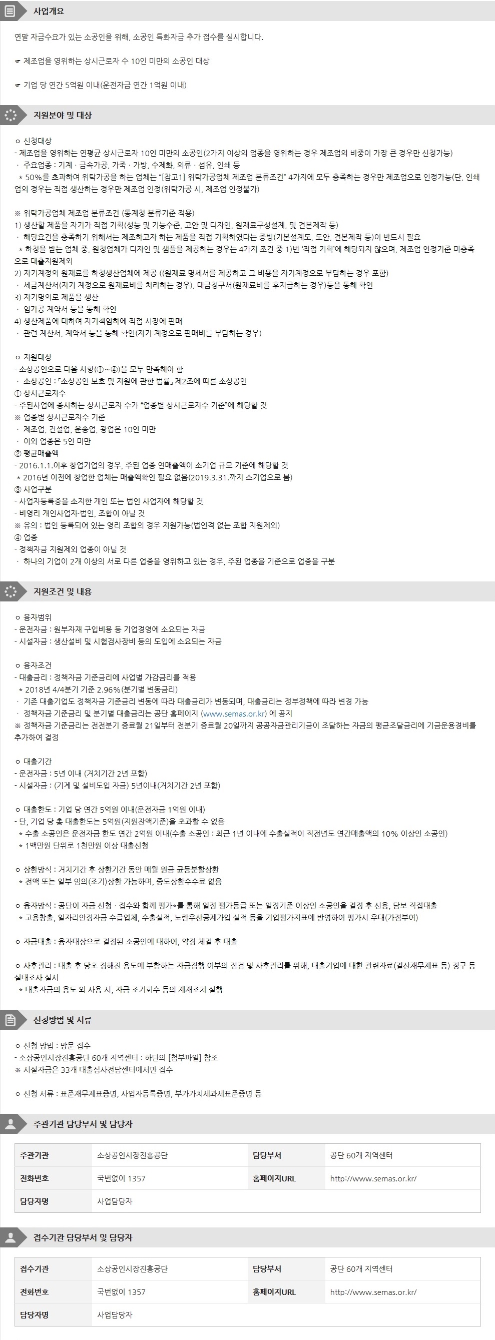 2018년 소공인 특화자금(제조업) 11월 추가 접수 안내